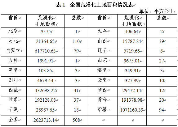 中國荒漠化土地情況